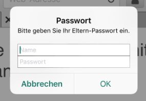 In einem sich dann öffnenden Fenster werden Sie um Eingabe des Elternpasswortes gebeten. Achten Sie darauf, dass Ihnen Ihr Kind bei der Passwort-Eingabe nicht über die Schulter blickt. Auf diese Weise können Sie die Webseite direkt freigeben (oder auch nicht).
